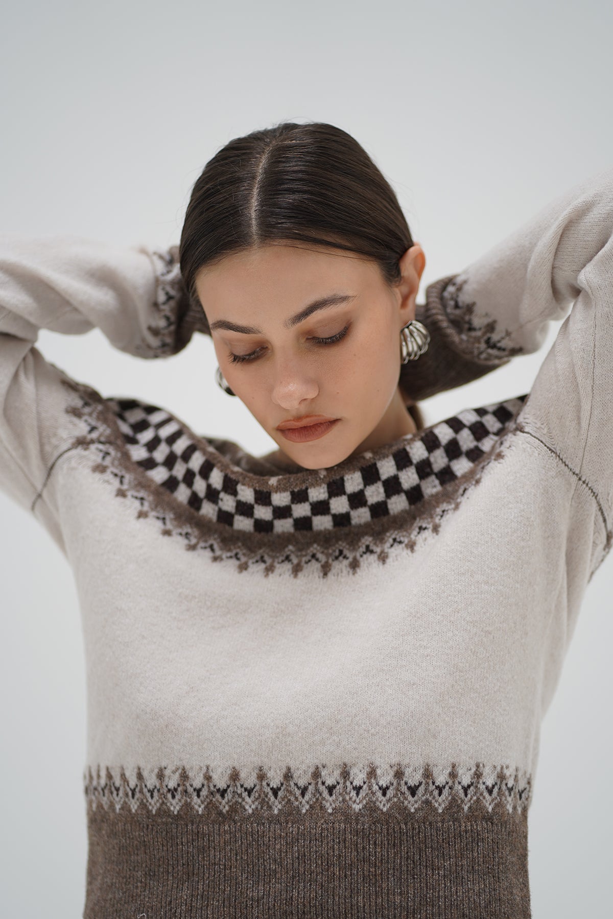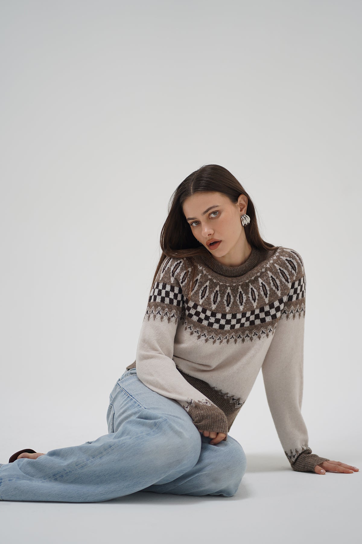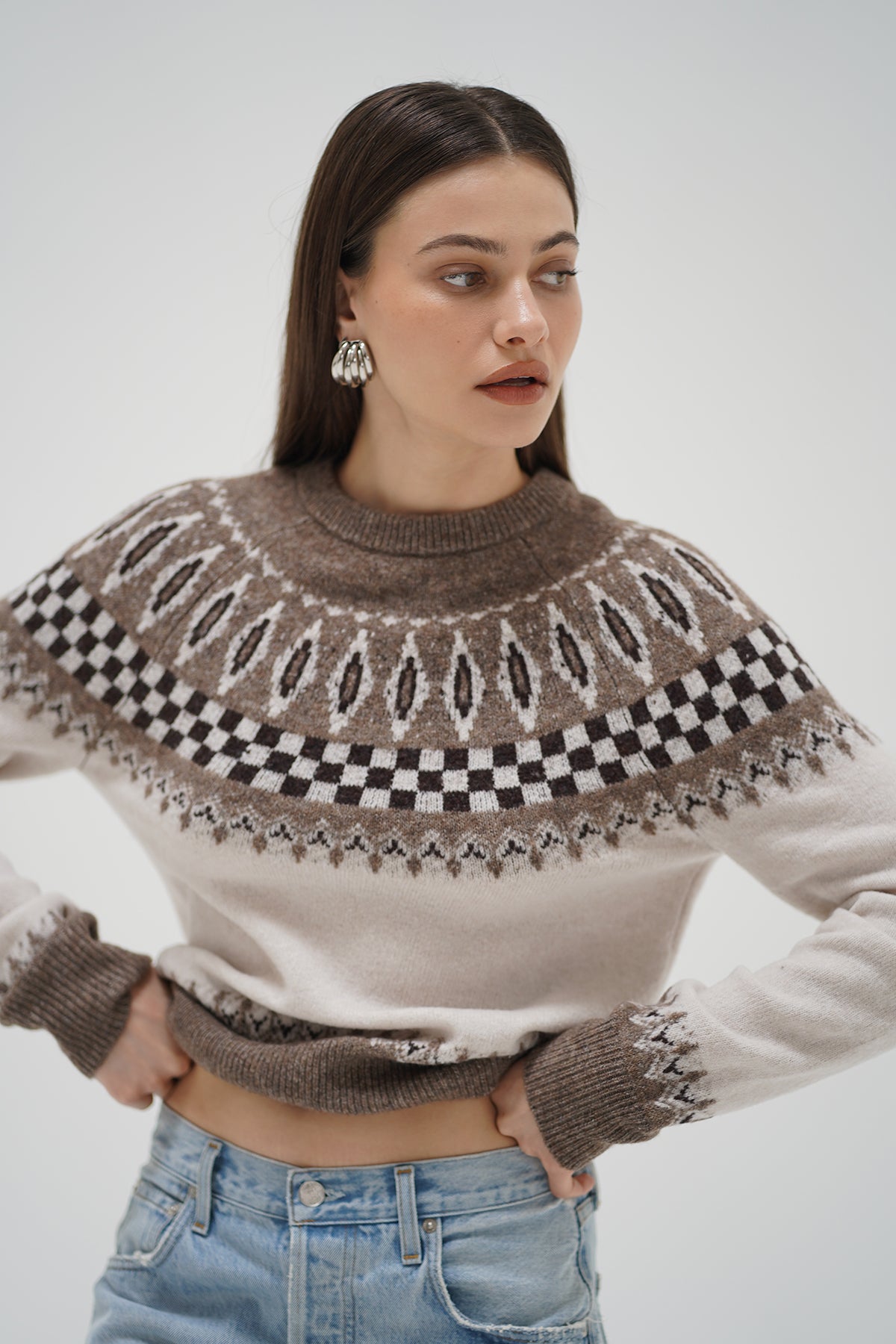Tali is a crew neck fair isle sweater with a semi relaxed straight fit.