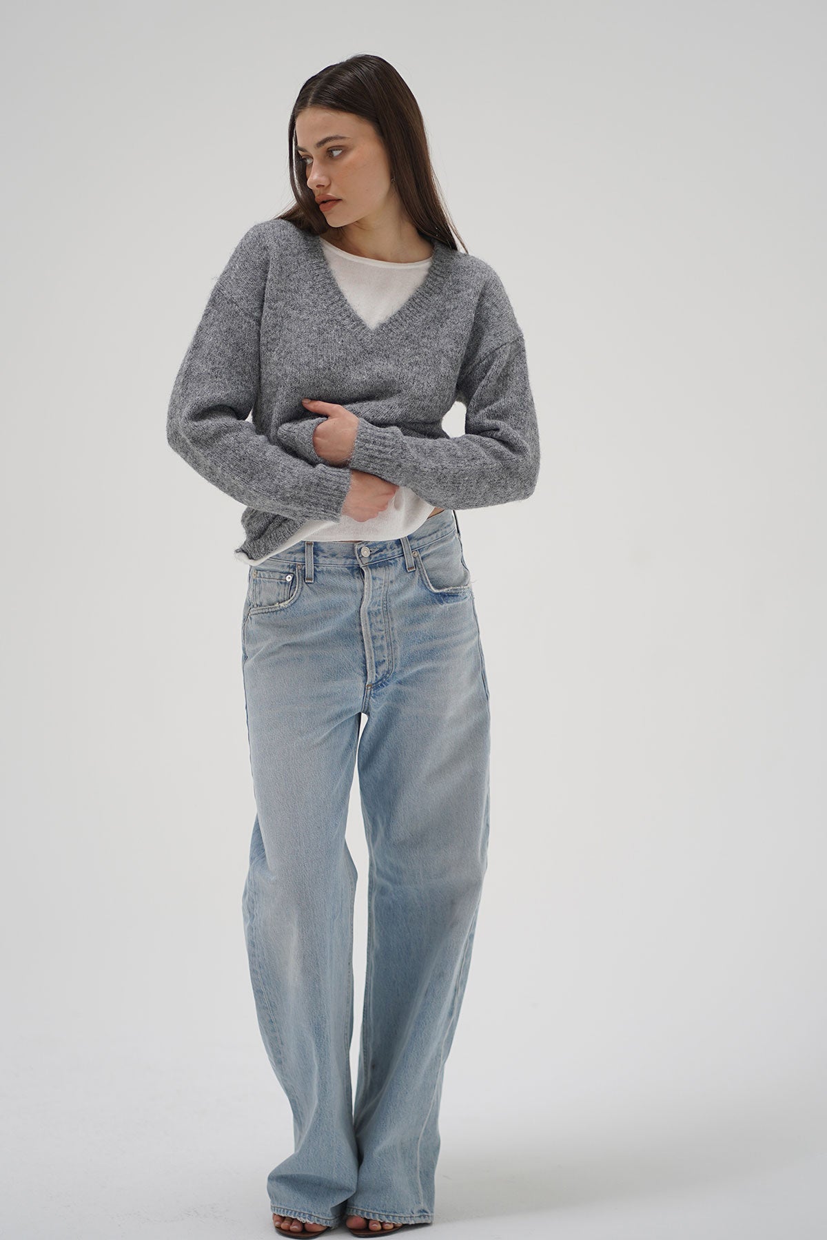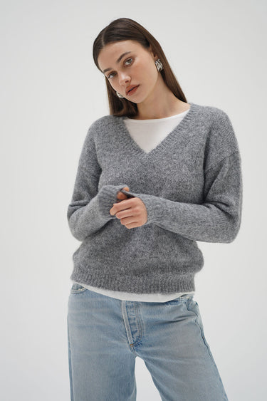 Sienna Fuzzy Double Layer Sweater - Shadow Grey With Ivory