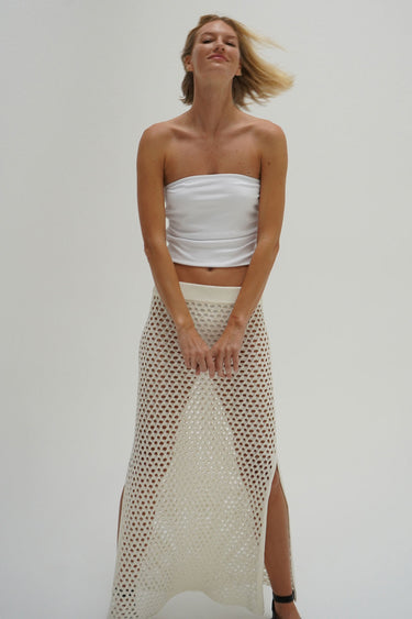Holly Ribbed Strapless Top - White