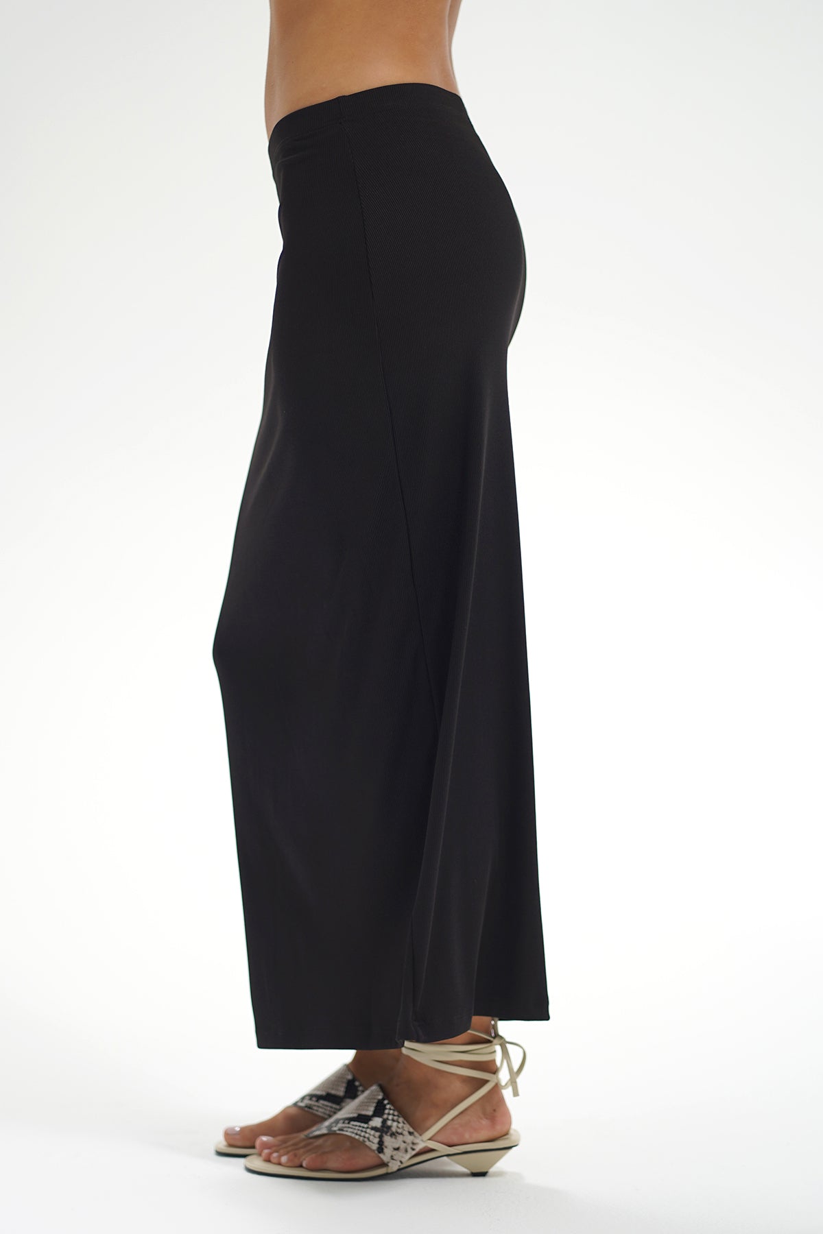 Slater is a pull on style skirt with one side slit. This skirt is made in our shine 2x1 rib fabric.