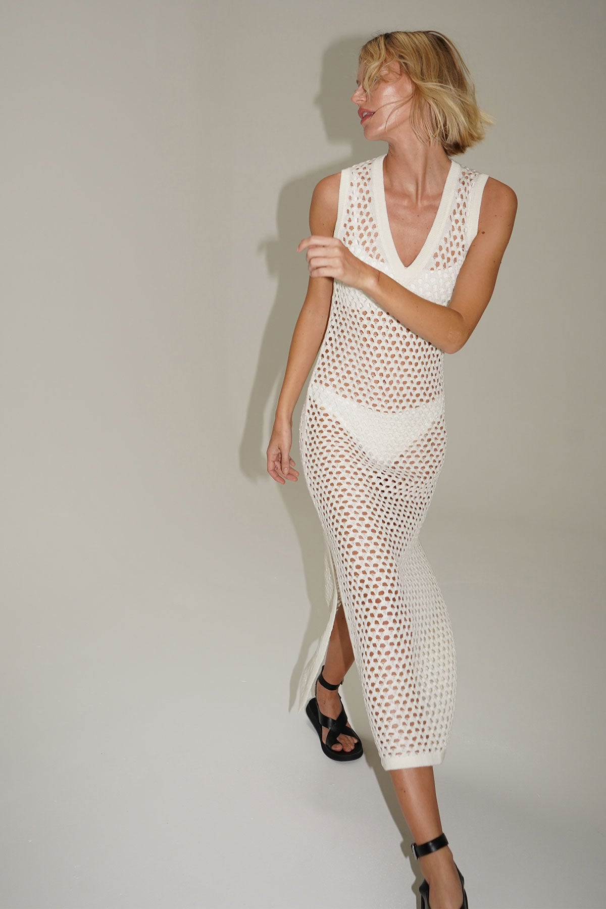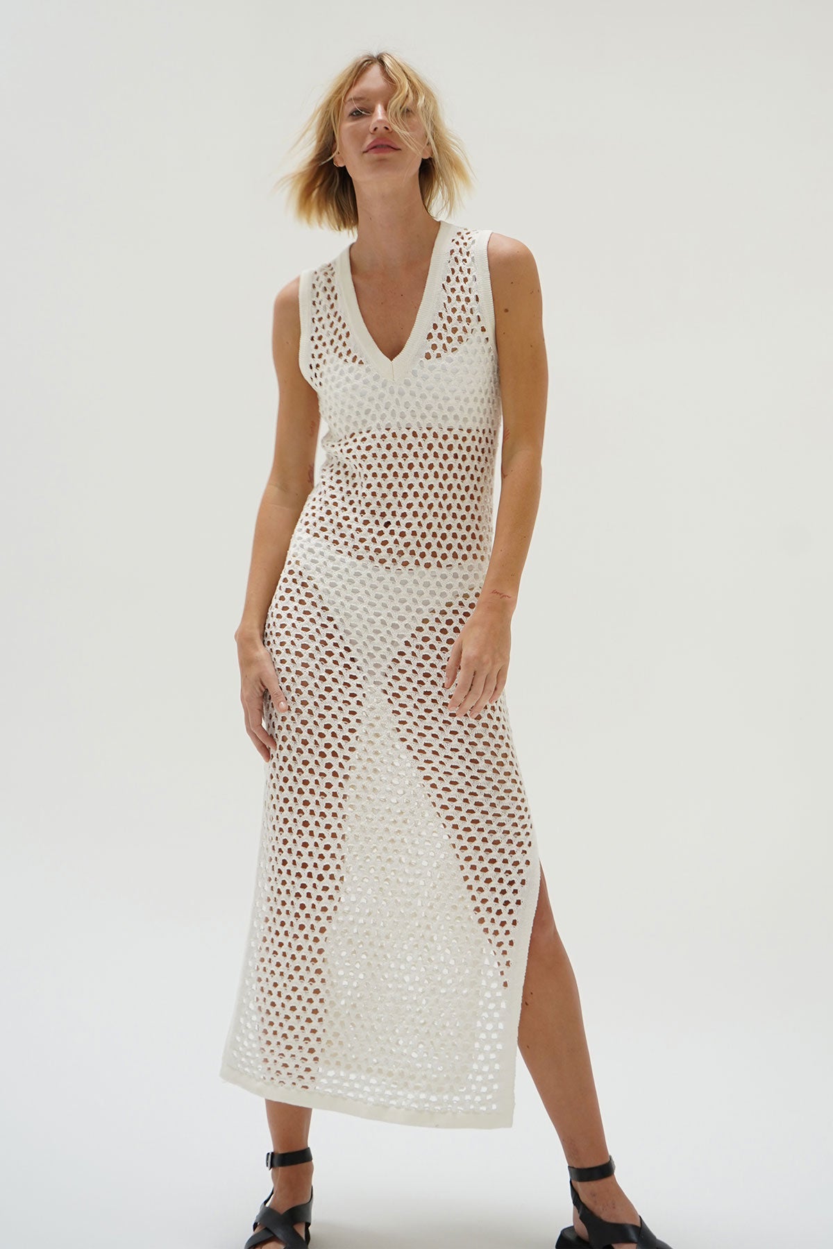 So good we had to bring it back. Our best selling open knit is a wardrobe staple. The Althaia is a body skimming, maxi dress with side slits and a V neckline.Â