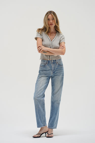 Ami Hook And Eye Tee - Greyscale Stripe