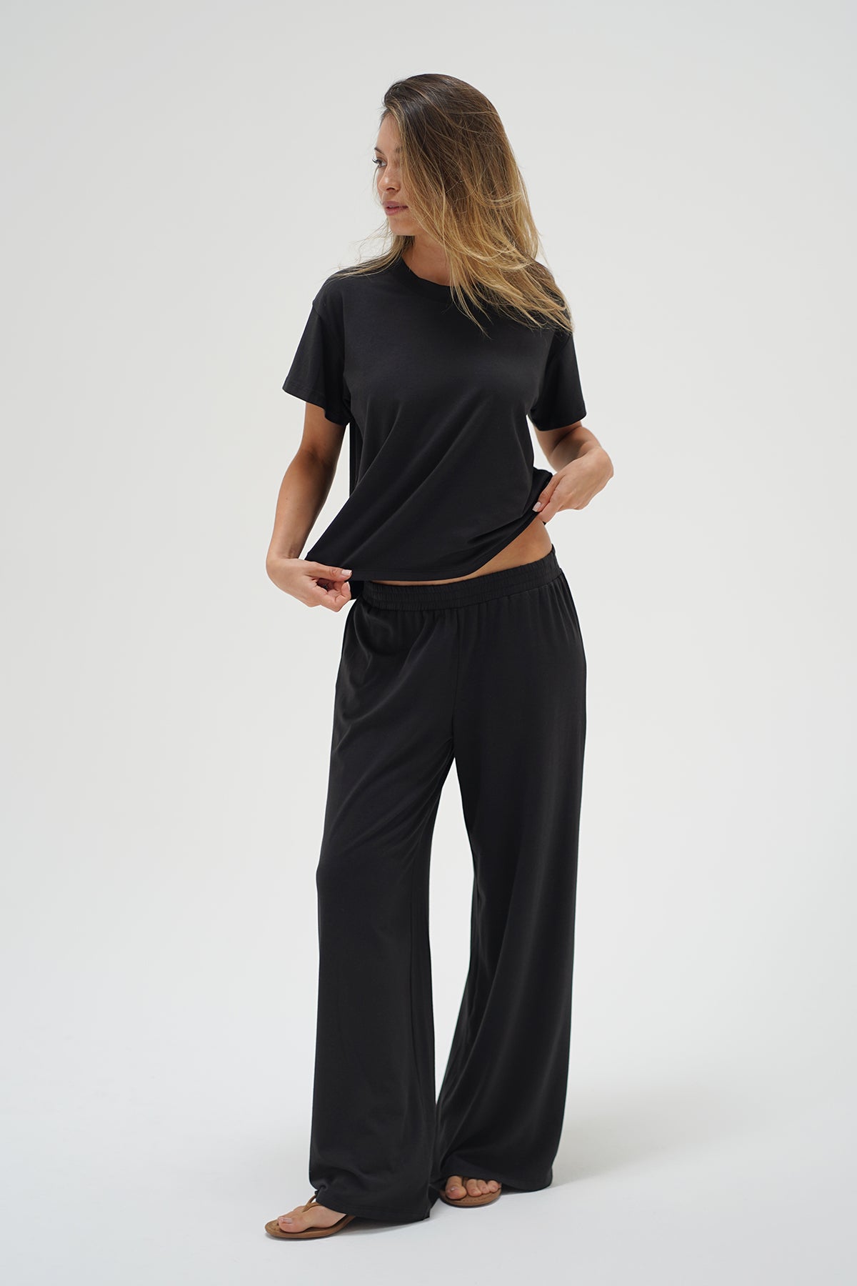 New to Essentials - The new buttery soft jersey. Base is a relaxed fitting pull on style pant with an elastic waist.